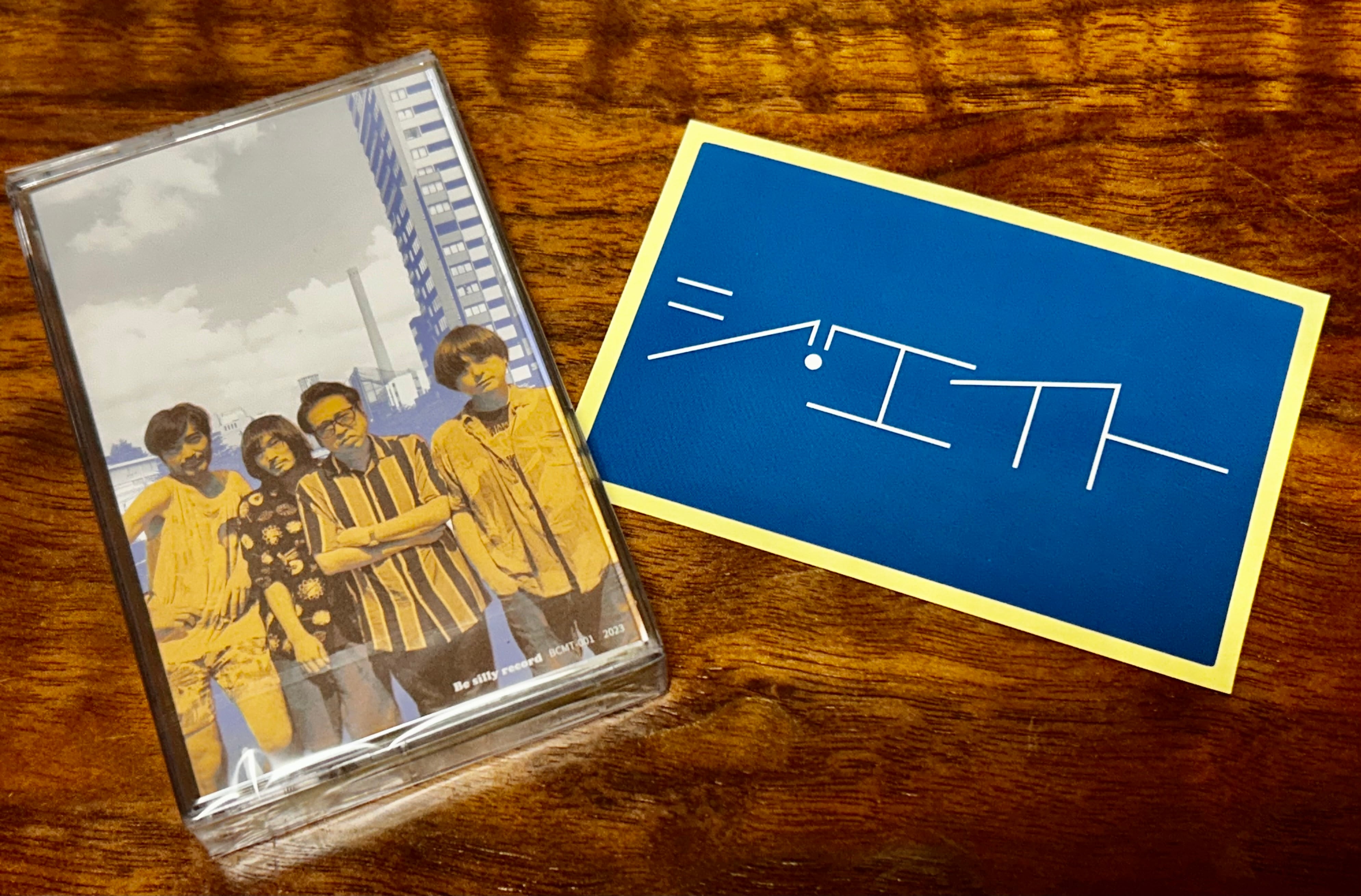 ジ・エイトのフィジカル音源第一弾「正しい毎日」の1曲入りカセットテープ+テープサイズのロゴステッカーのセット。ジャケット&ロゴデザインは中村ジョー氏